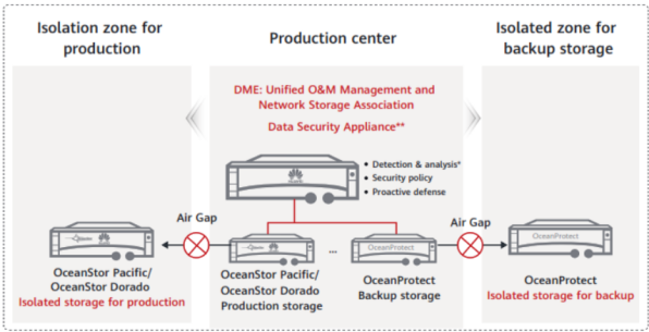 Perusahaan Skala Besar Huawei menghadirkan perlindungan maksimal untuk core production data melalui fitur secure snapshot. Snapshot ini dibuat otomatis setiap 4 jam untuk penyimpanan produksi dan dapat mengisolasi penyimpanan. Dengan cara ini, layanan tetap berjalan lancar dan data tetap aman. Selain itu, secure snapshot bersifat tahan modifikasi (tamper-proof), sehingga menjamin data yang sudah dibackup tetap utuh tanpa ada kehilangan sedikit pun (zero loss).